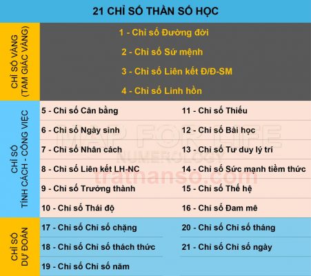 Thần số học bao gồm 21 chỉ số, được chia làm 4 nhóm: =>Nhóm các [...]